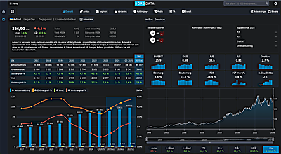 Se de vanligaste nyckeltalen inom olika kategorier, med upp till 20 års historik för nyckeltal och aktiekurs på samma sida. Jämför bolagets nyckeltalshistorik i snitt och tillväxt med andra bolag inom samma bransch.